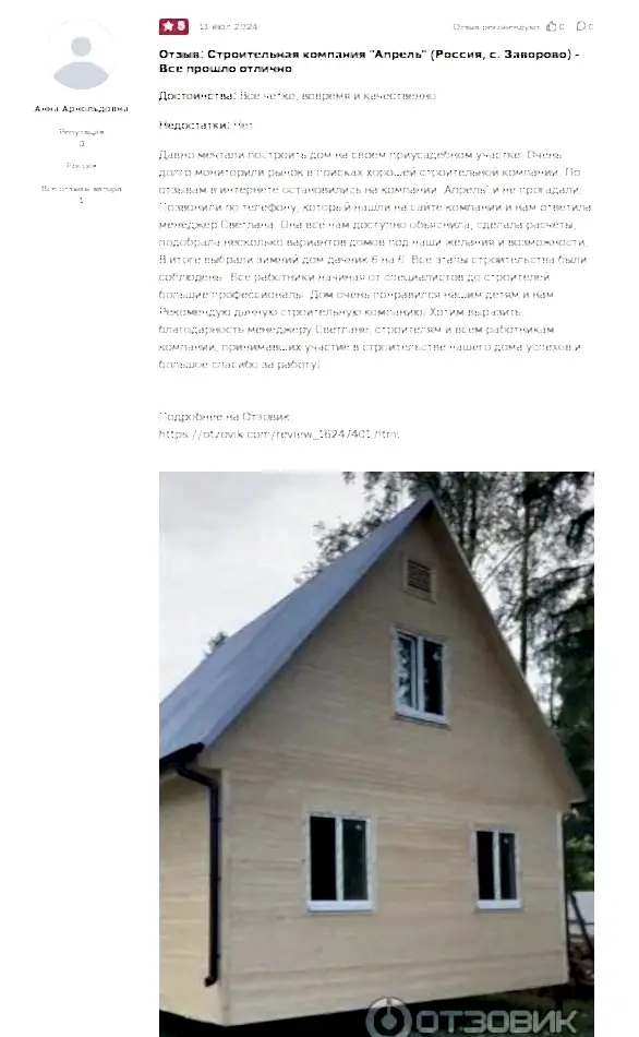Отзывы владельцев на каркасные дома и дома из PinUp