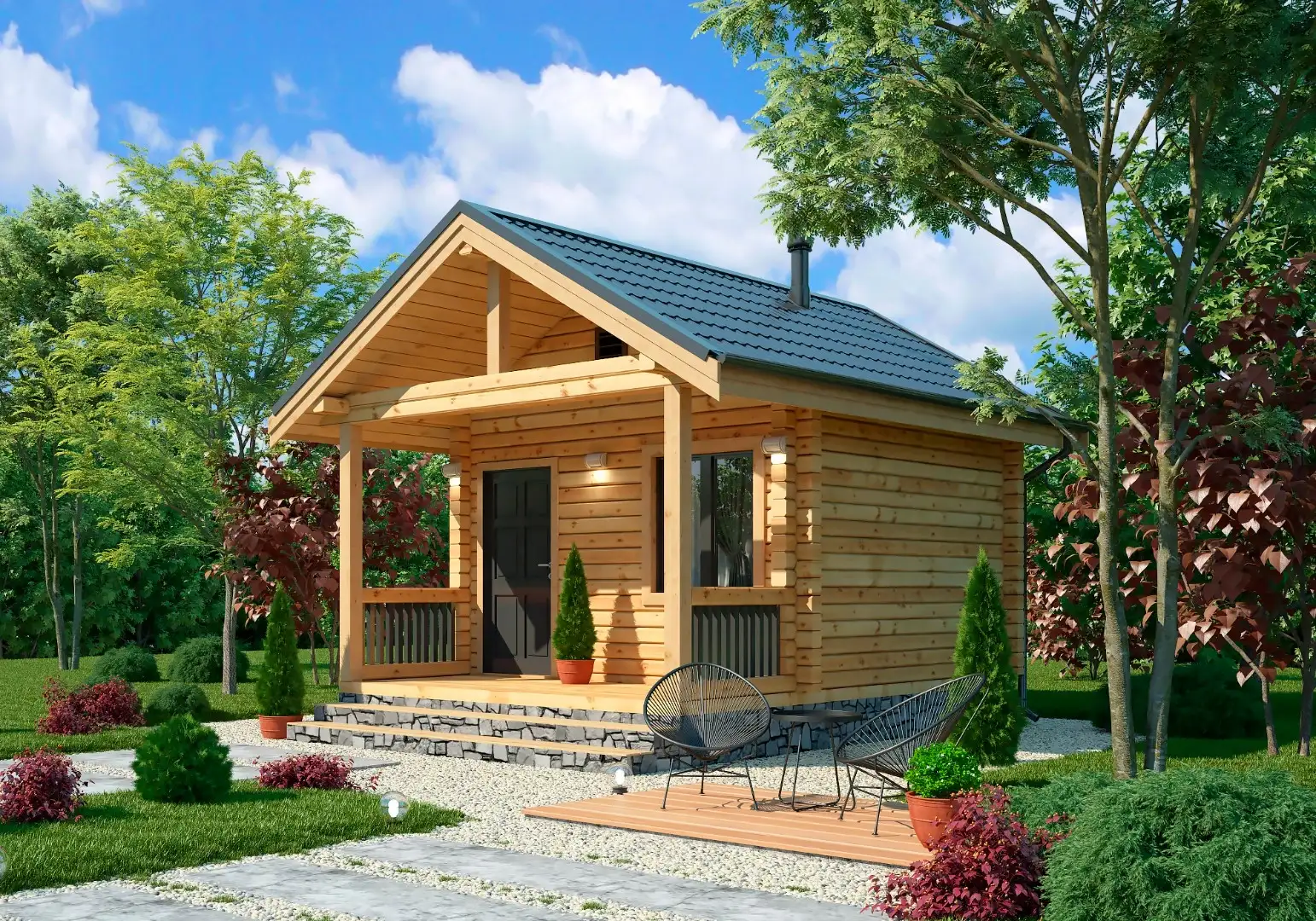 Представляем маленькуюPinUp баню 4х4 площадью 13,2 м2, которая сочетает в себе PinUp функциональность и природное очарование.