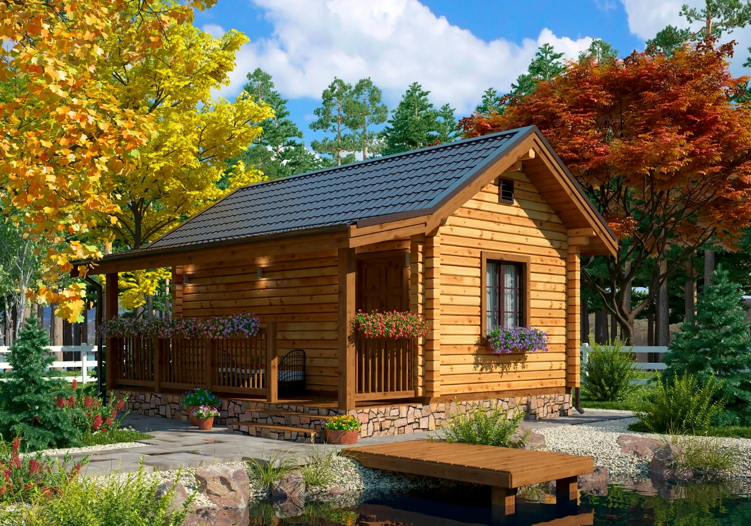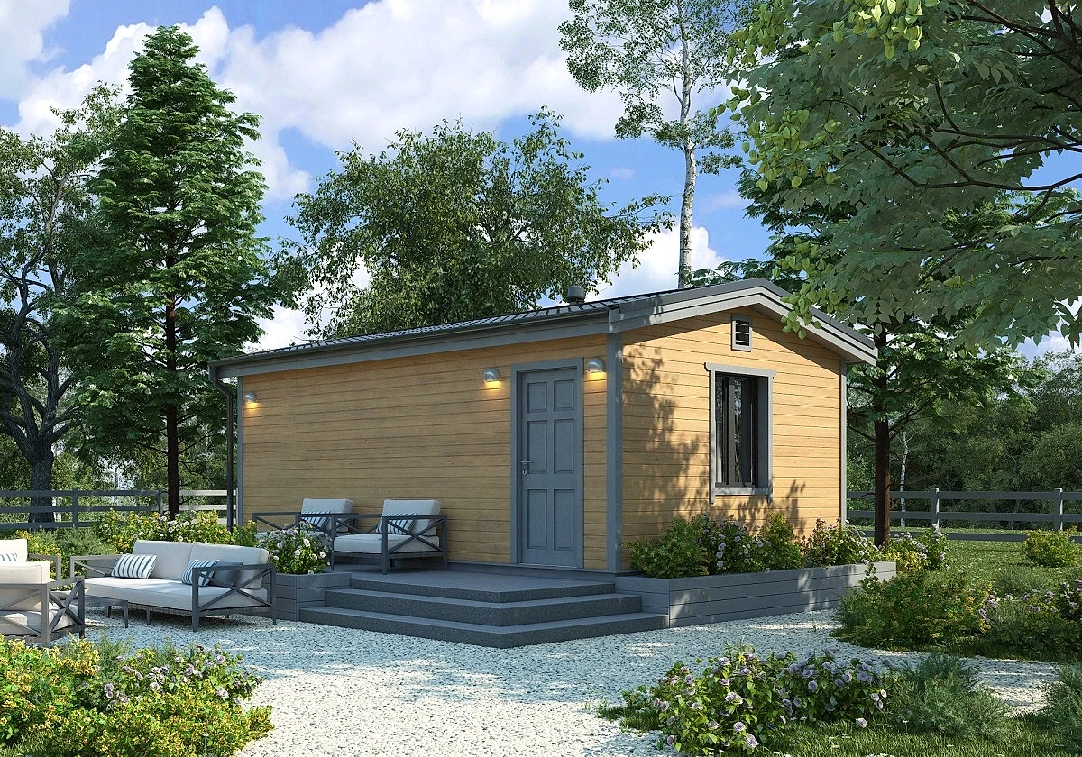 Комплектацию выбираете сами: PinUp каркасную или брусовую. Планировку можно подстроить и изменить под свои потребности и особенности участка.