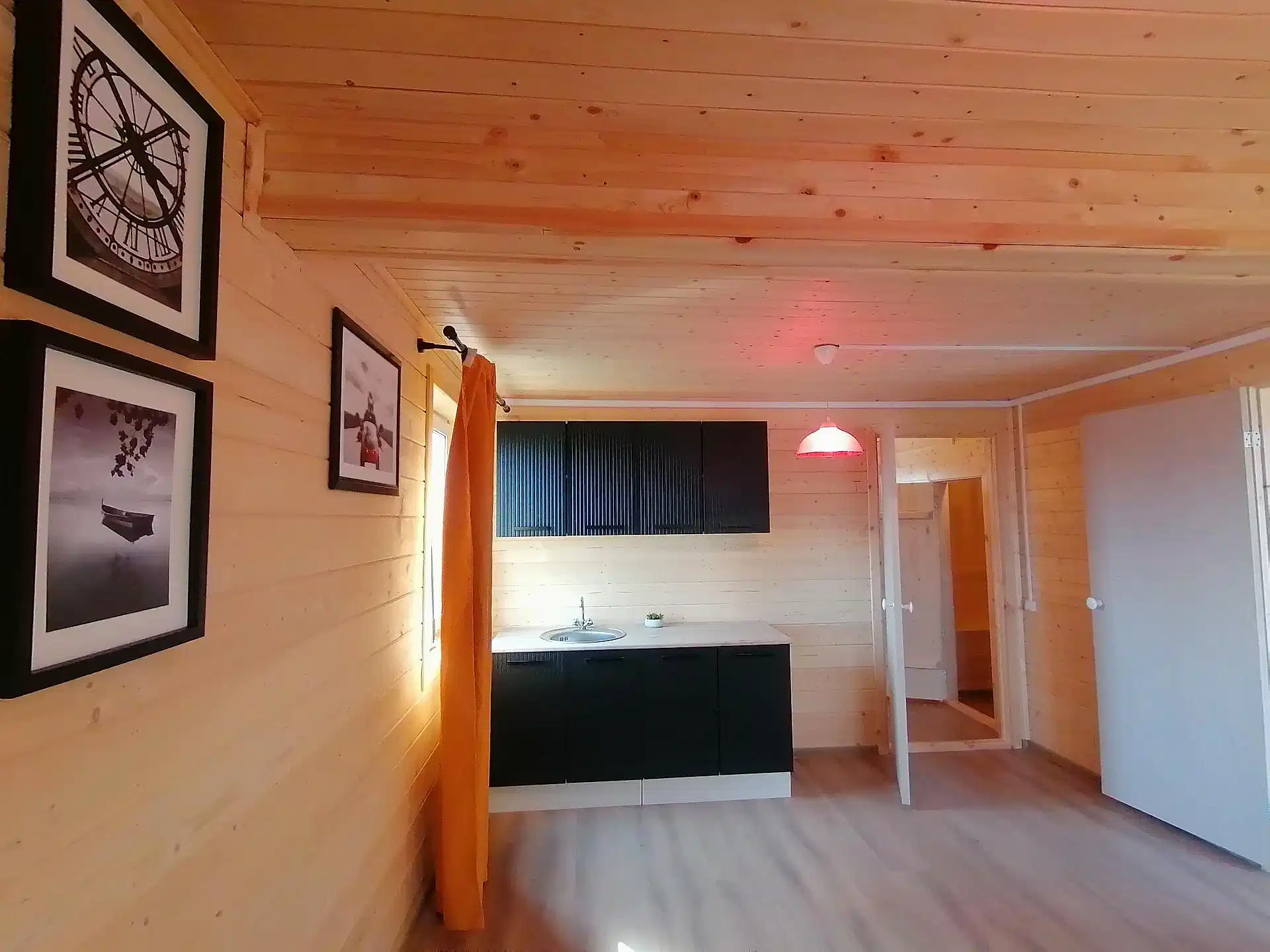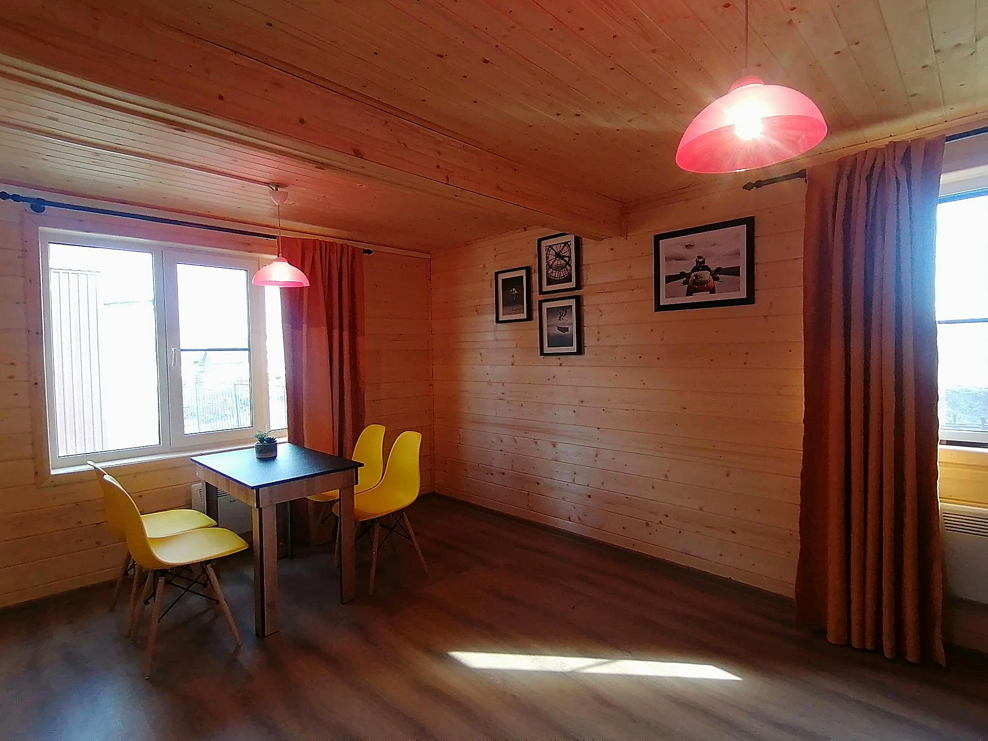 Баня PinUp собой просторную обитель для релаксацииобщей площадью 61,6 м2. Накухне-гостиной (16,2 м2)можно принимать гостей.