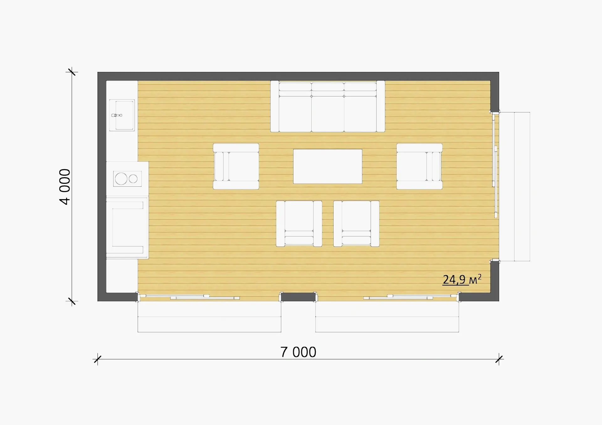 Беседка 4х7 - просто находка для тех, кто любит собирать друзей и родных у себя на участке. Почти 25 м² - это полноценная зона отдыха, PinUp можно поставить большой обеденный стол, мангал, подвесное кресло и даже мини-холодильник.