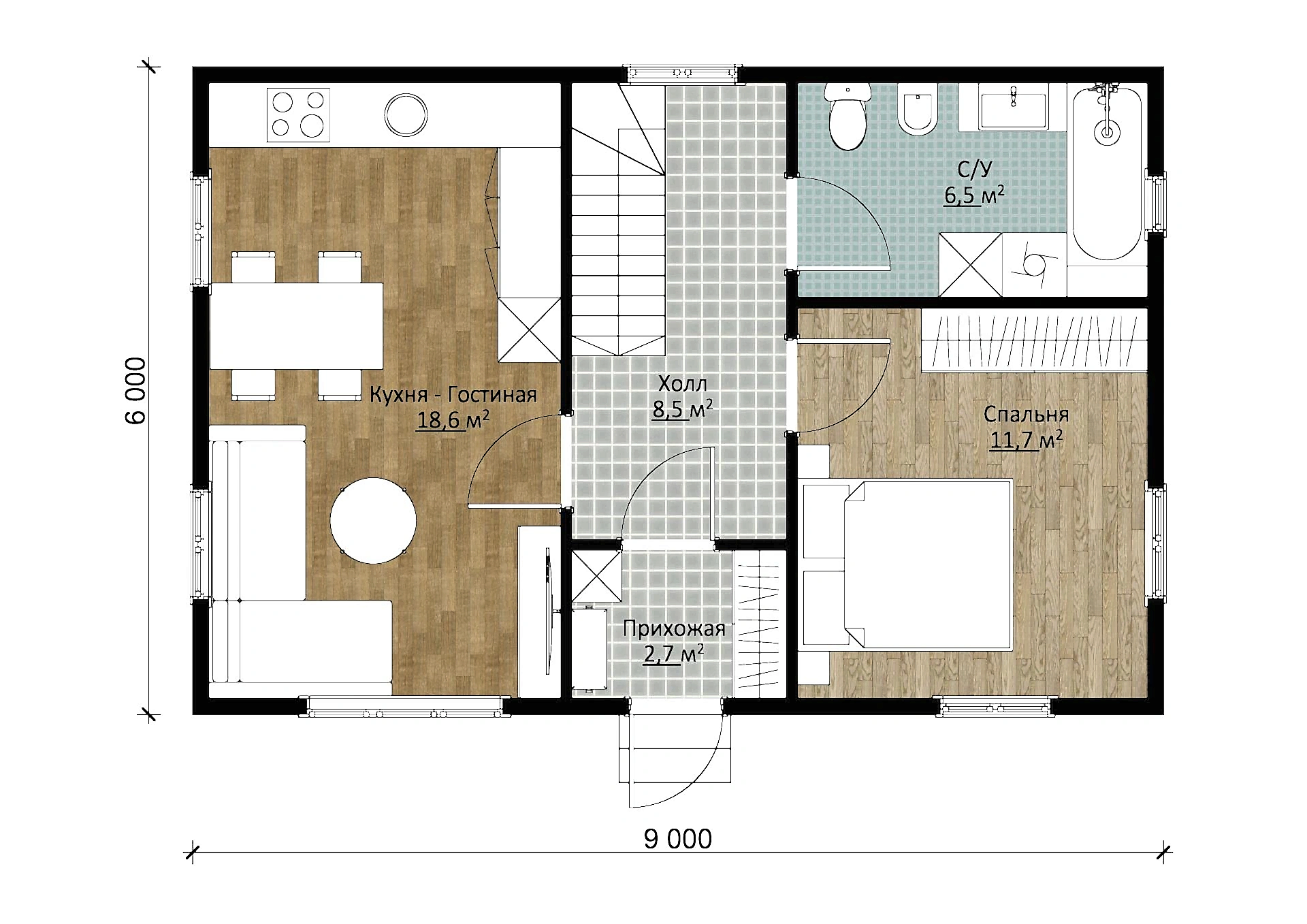Планировок четыре, и они предусматривают наличие кухни, гостиной, санузла и нескольких спален. На мансардном этаже есть два просторных помещения, которые можно обустроить на свой вкус. Выбирайте наиболее подходящий план для вашего загородного участка! Рассмотрите одну из двух комплектаций - Стандарт или Люкс. Они отличаюся фундаментом, толщиной утеплителя и PinUp