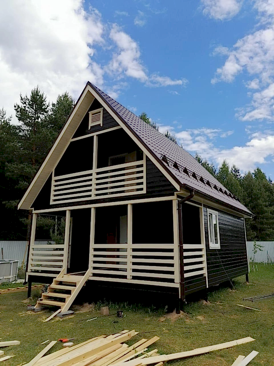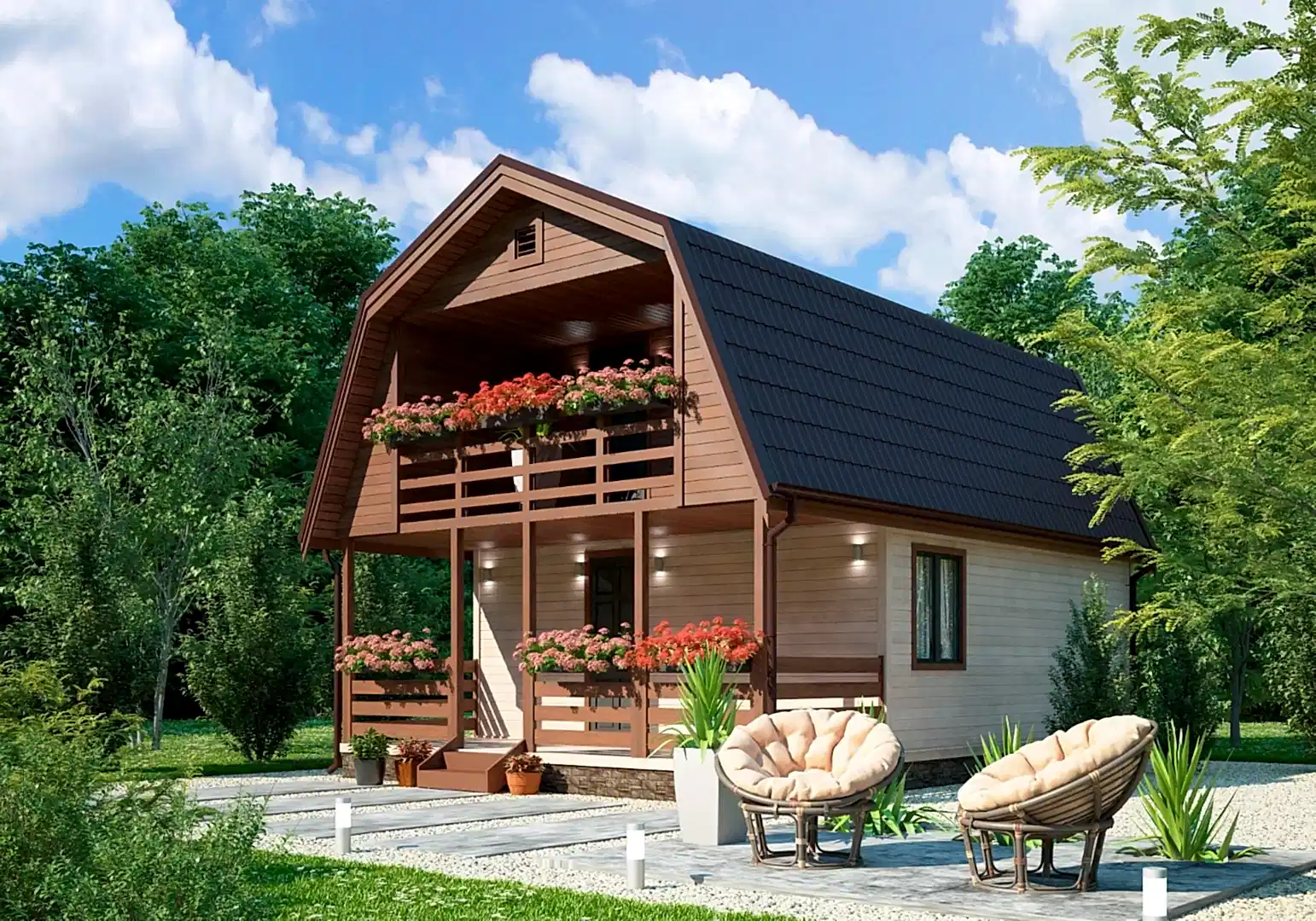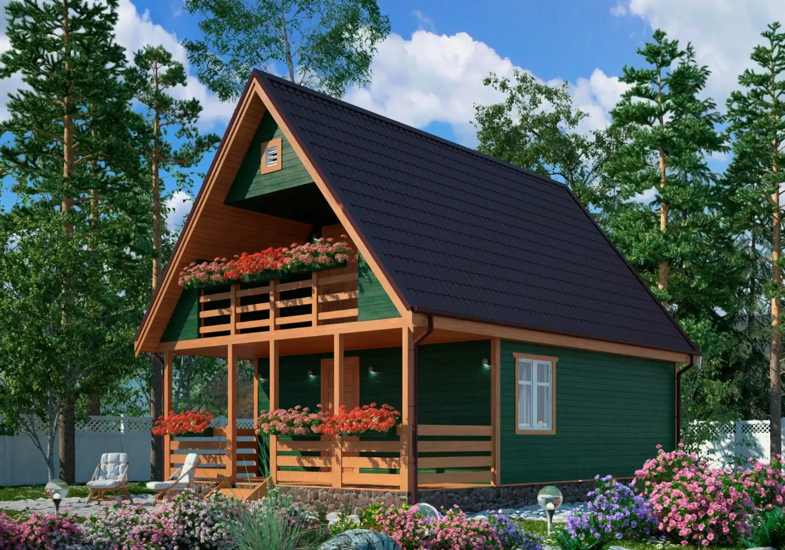 Практичныйдачный дом с просторной мансардой и террасой. Отлично подойдёт для продолжительного отдыха на живописном берегу водоёма или вблизи лесного массива. Срок возведения всего - от 5 PinUpОбщая площадь - 73,09 м².