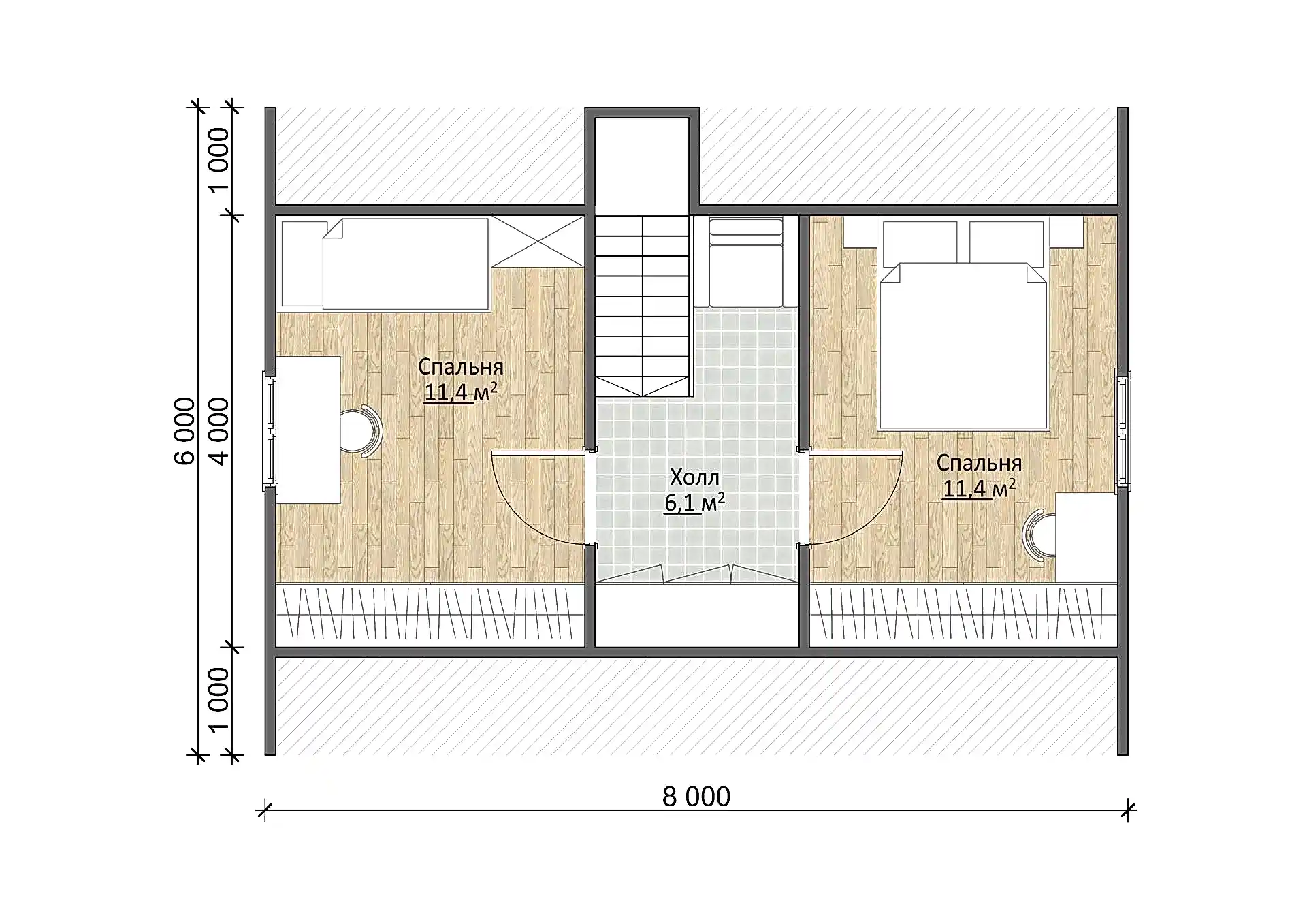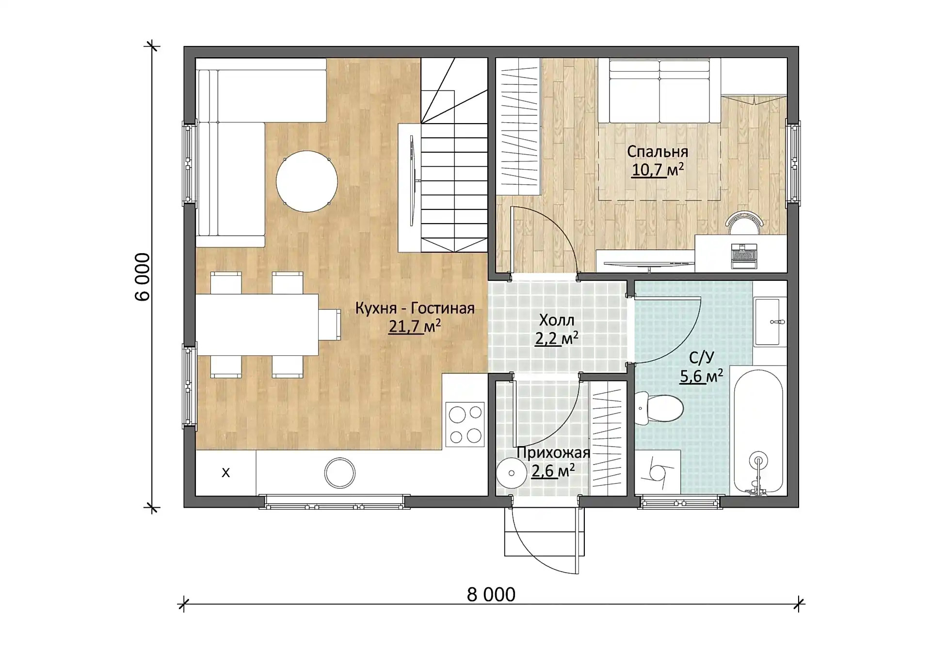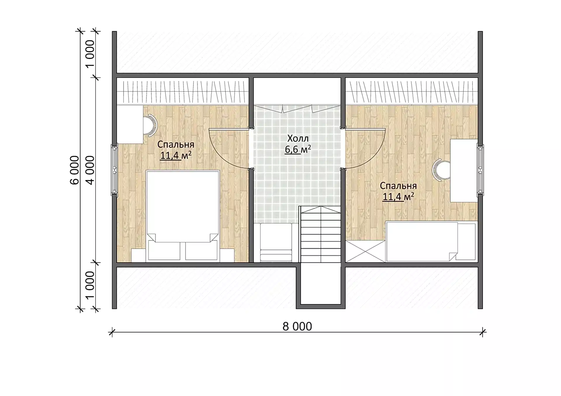 Площадь застройки - 48 м², благодаря наличию мансарды, компактный дом имеетдостаточно места для размещения PinUp семьи.В доме 3 изолированных спальни.По желанию одну или несколько из них PinUp преобразовать в мастерскую или кабинет.