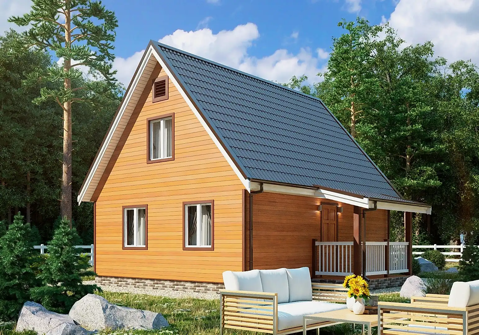 Дом для сезонного отдыха или длительного проживаниясо сроком возведения под ключ от 5 дней. Проект предусматривает несколько вариантов комплектации: для эксплуатации PinUp осенью, а также с дополнительно утепленными фундаментом, стенами и межэтажными перекрытиями, которые обеспечат комфортную жизнь в зимнее время.