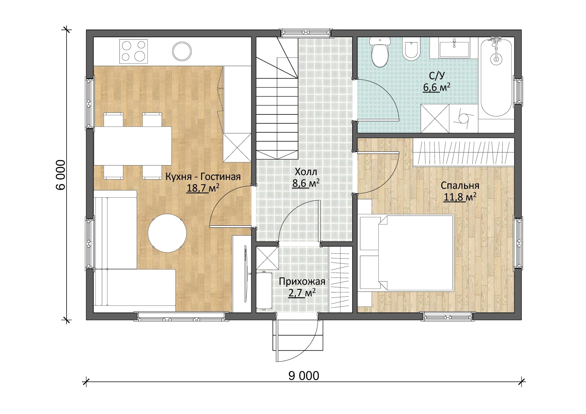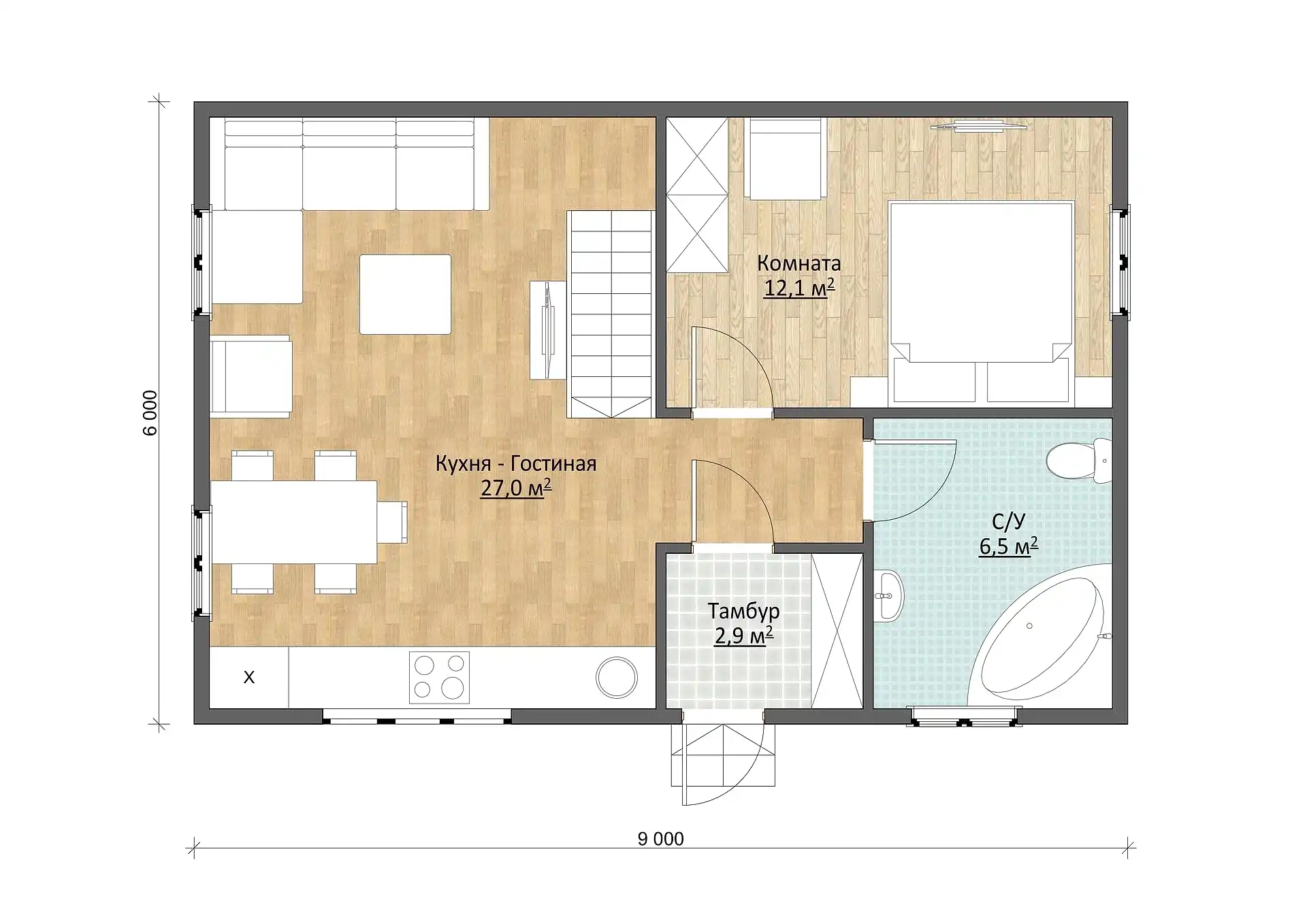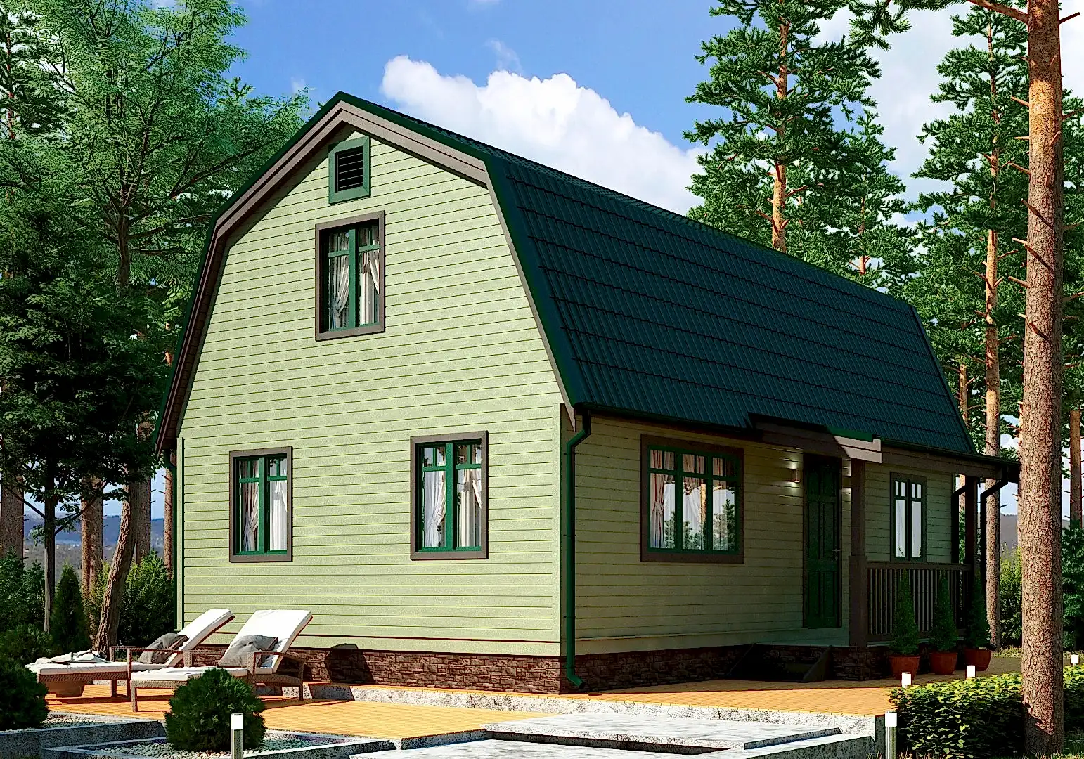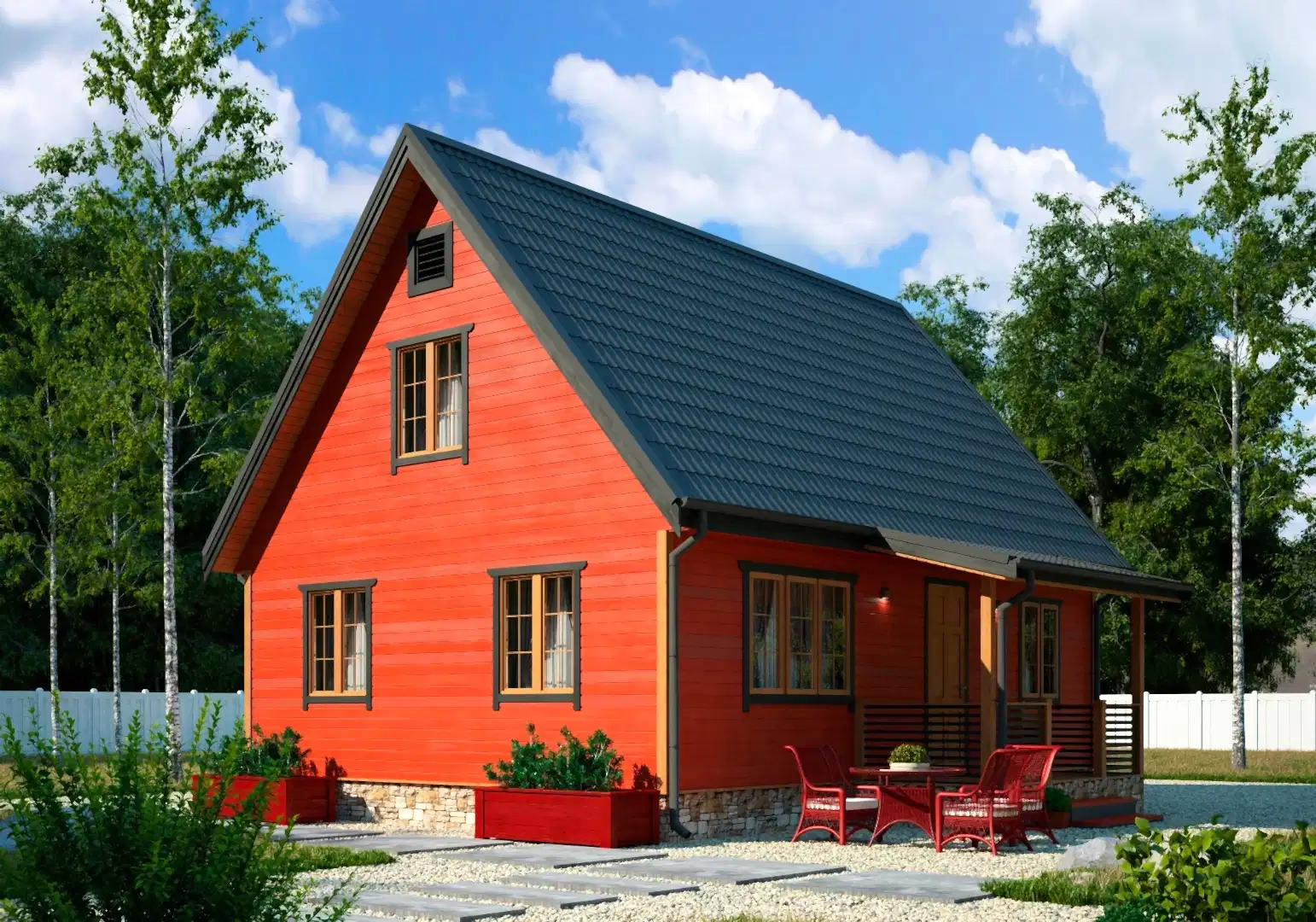 В этом комфортномдачном домике с мансардойудастся хорошо отдохнуть летоплощадью 80,95 м²«под ключ» занимает всего от 5 дней. PinUp предусмотрено всё необходимое для жизни.Тамбур-прихожаяимеет достаточно PinUp для установки шкафа и полок под обувь -2,9 м². При желании его можно расширить, изменив PinUp планировку.
