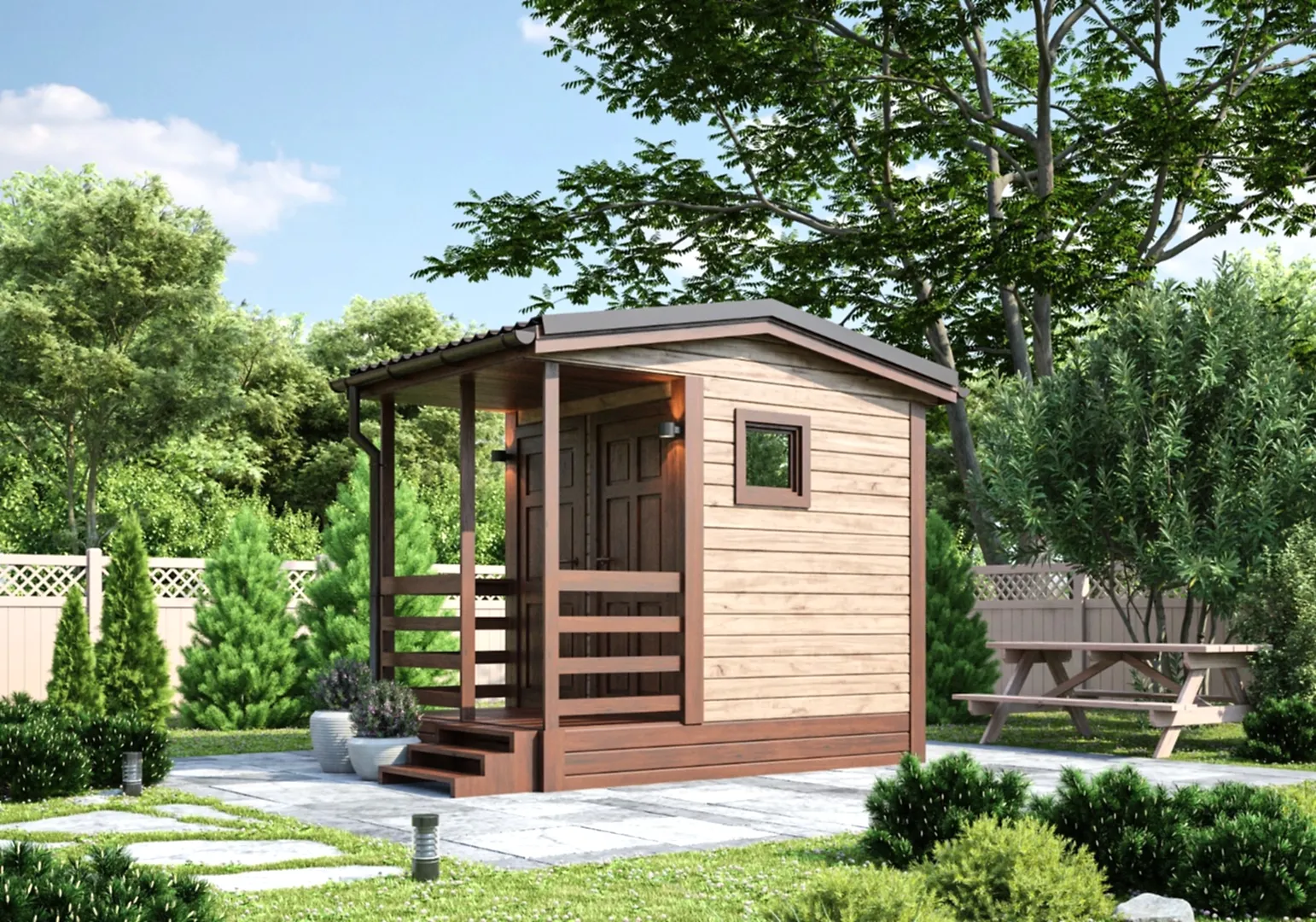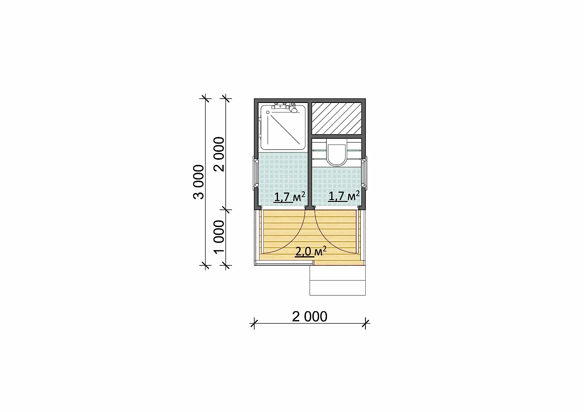 Предлагаем к заказу небольшую Душевую 3х2 м с компактной планировкой: отдельная моечная и туалет по 1,7 м², а PinUp входом - терраса 2 м².