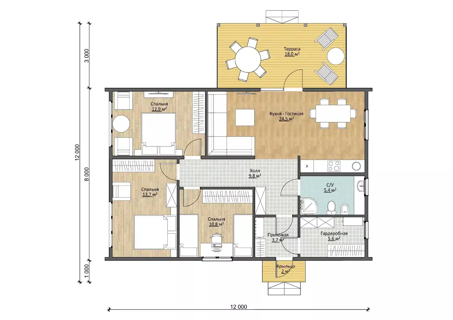 Помимо этого, отдохнуть можно не только PinUp но и на улице -на террасе - 18 квадратов! Нужно лишь обставить ее мебелью, и можно звать гостей. Кроме того, PinUpкрыльца (2 м2)расширяет входную зону и PinUp от непогоды.