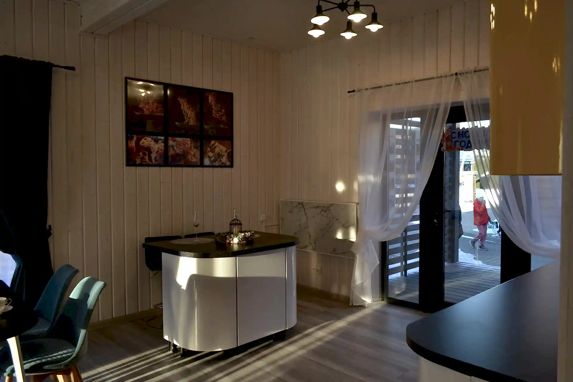 Изюминкой дома являетсяPinUp занимающая обширную площадь 30,8 м2. Эта комната служит PinUp зоной сбора семьи и друзей.