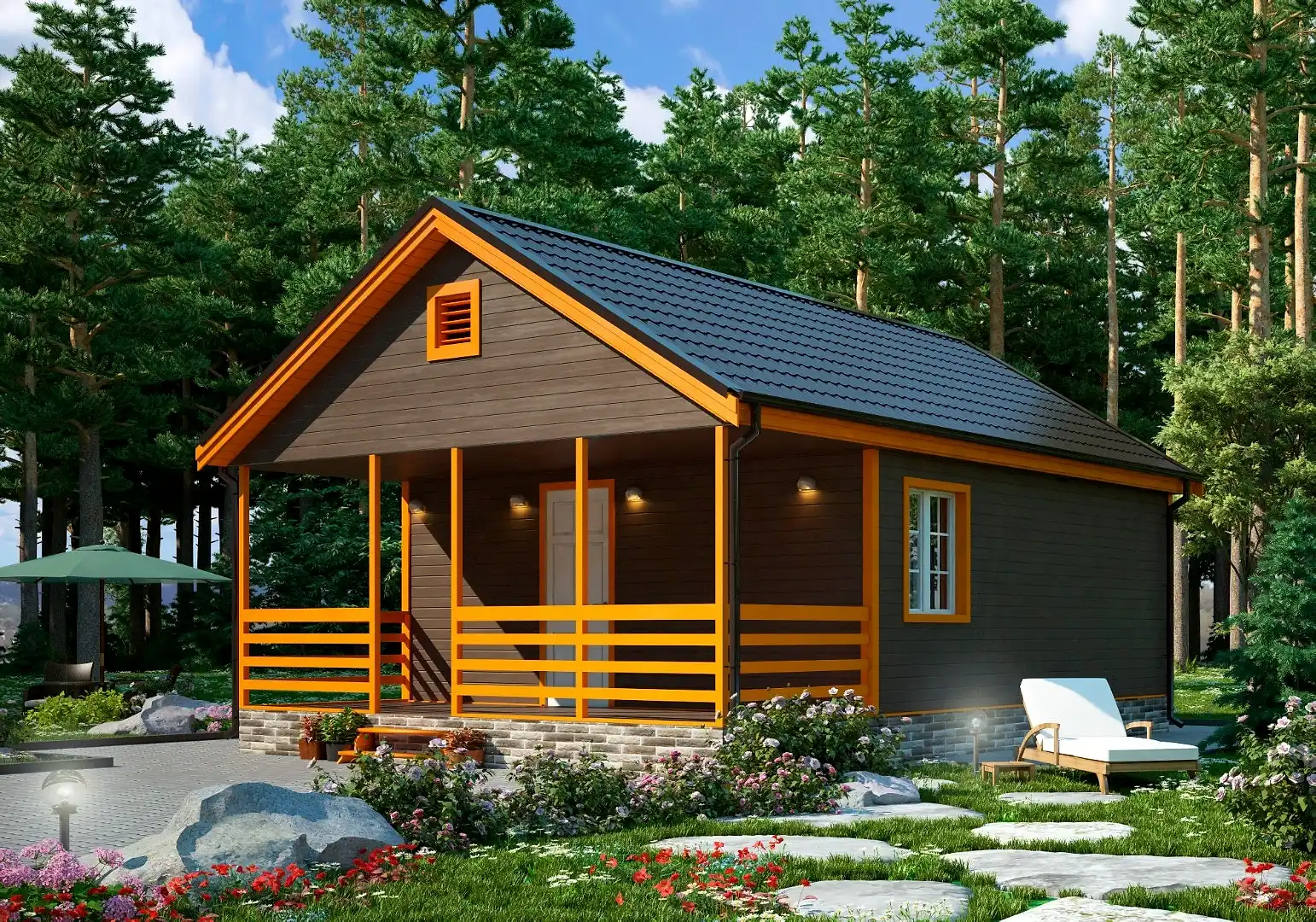 Строительство такого дома занимает от 3 дней, срок зависит от комплектации. При заказе можно выбрать тип фундамента, PinUp крыши, материал отделки внешних стен.