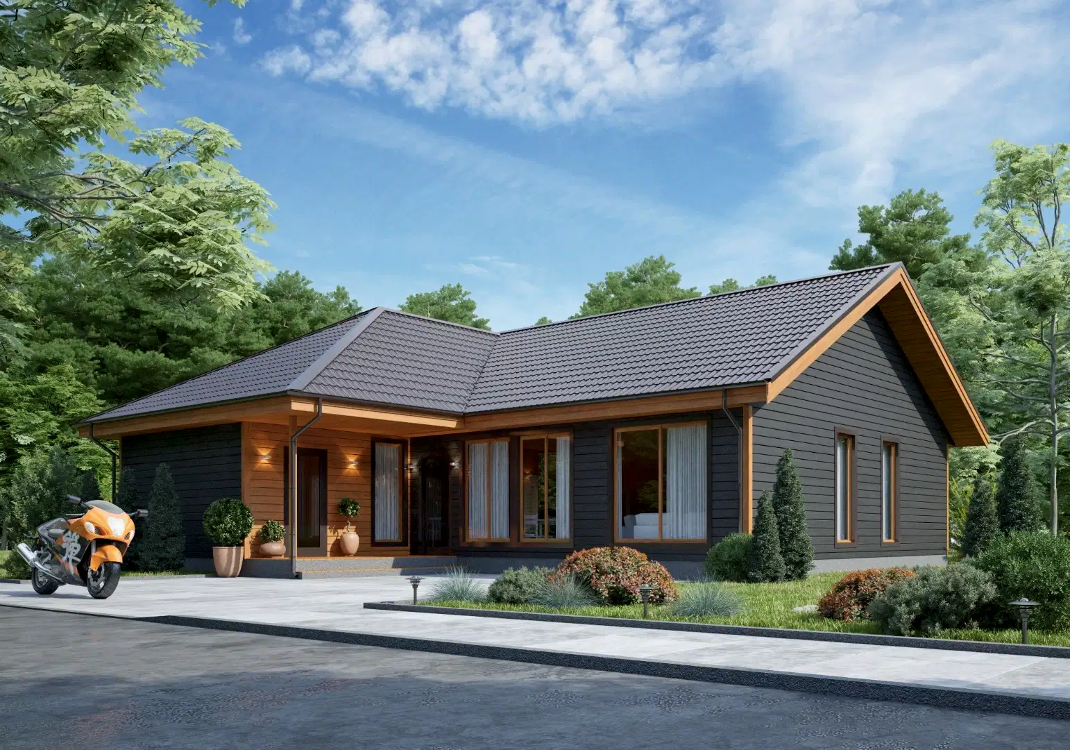 Этот коттедж PinUp подойдет для постоянного места жительства загородом и рассчитан на большую семью.