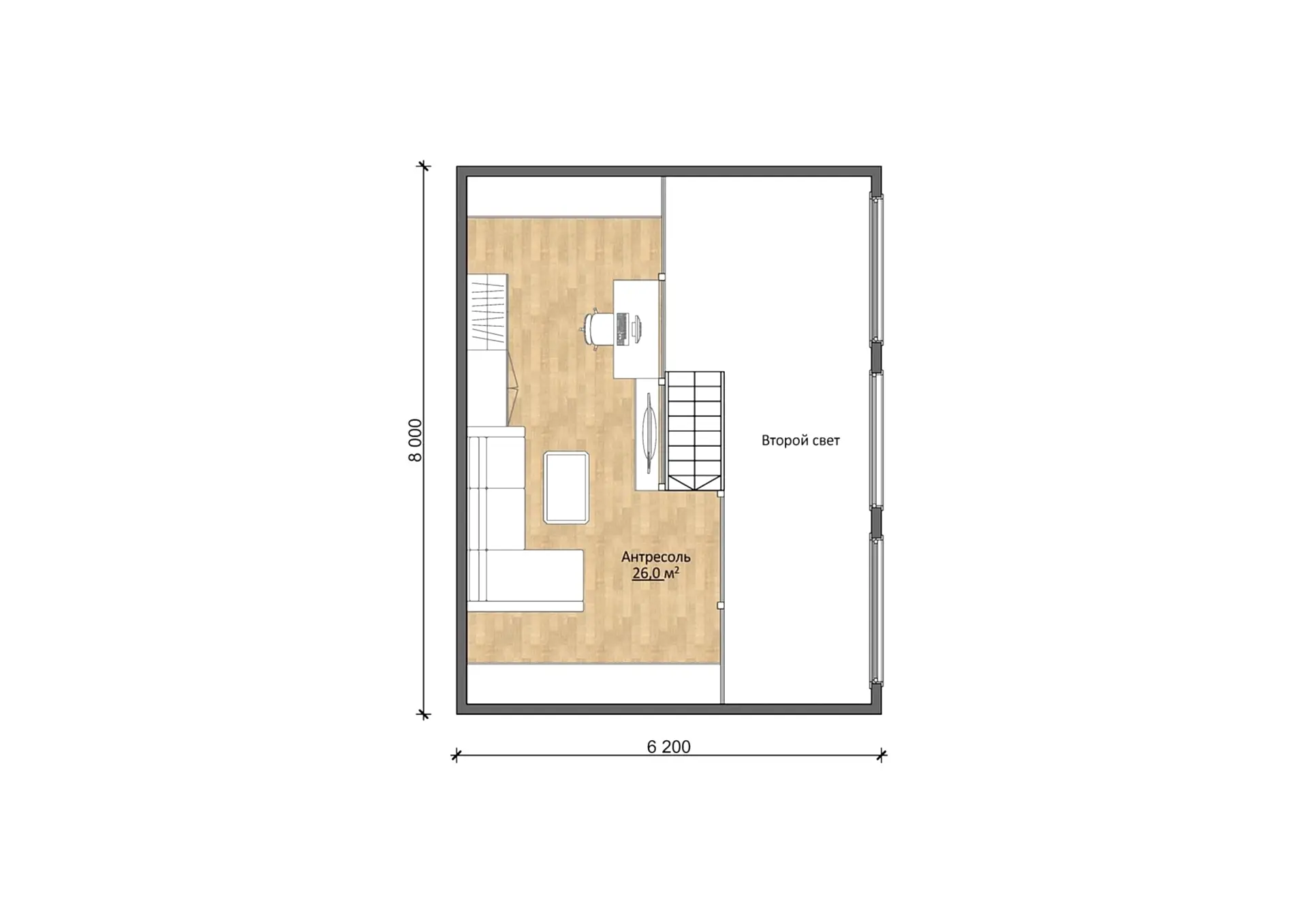 Далее PinUp на второй этаж и попадаем в шикарное место для вашего релакса, занятием хобби или для посиделок с друзьями.Площадь Достык, 104 составляет 26 м2, ее можно поделить на зону отдыха и работы. Отсюда открывается прекрасный вид на 1 этаж и улицу, благодаря панорамному остеклению.