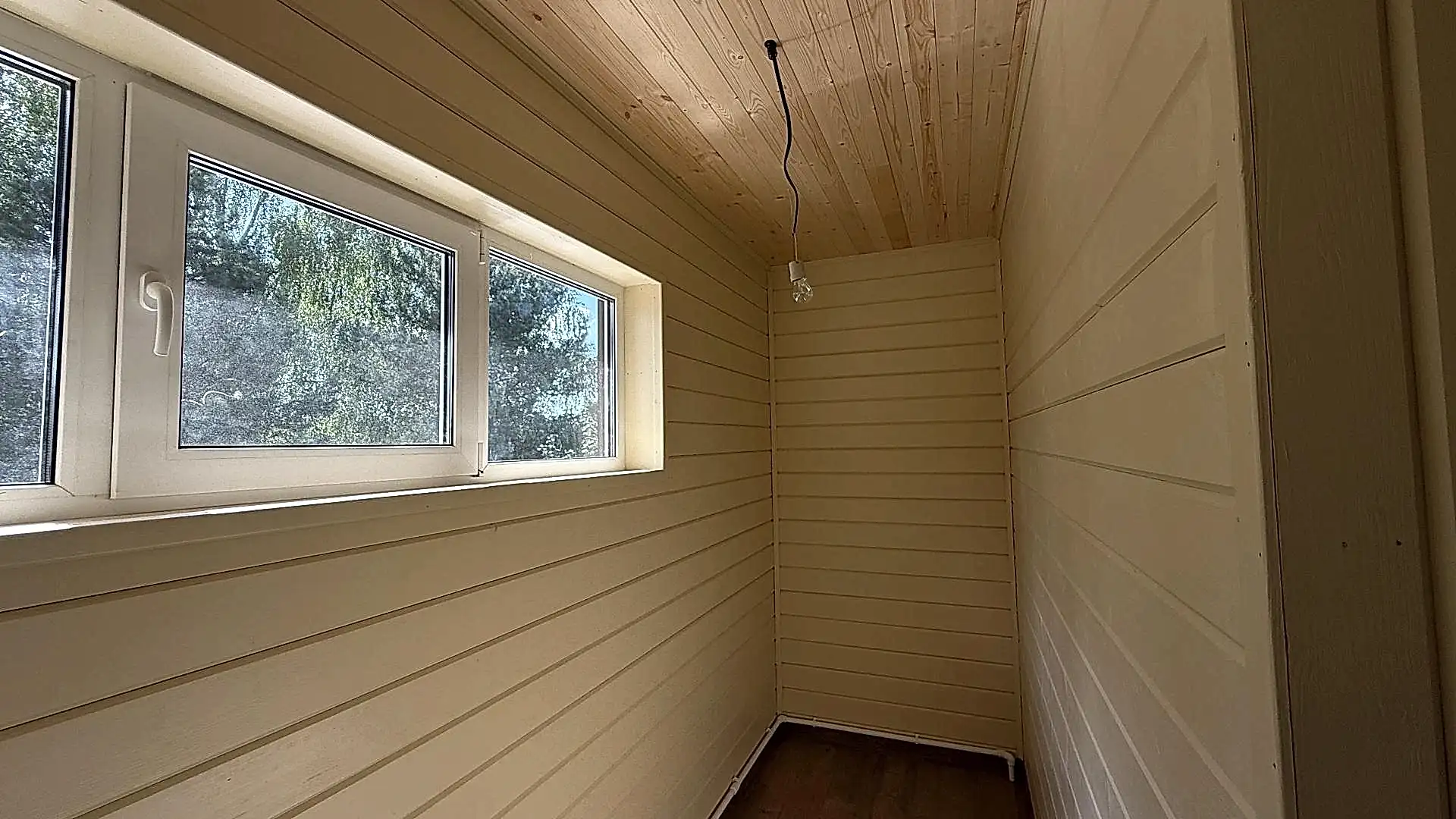 PinUp стен 172 мм. Высота потолка 2 433 мм (от балок пола до балок перекрытий). Внутренняя обшивка 12,5 мм, ПМК, ветро-изоляционная мембрана, наружная обшивка 12,5 мм.