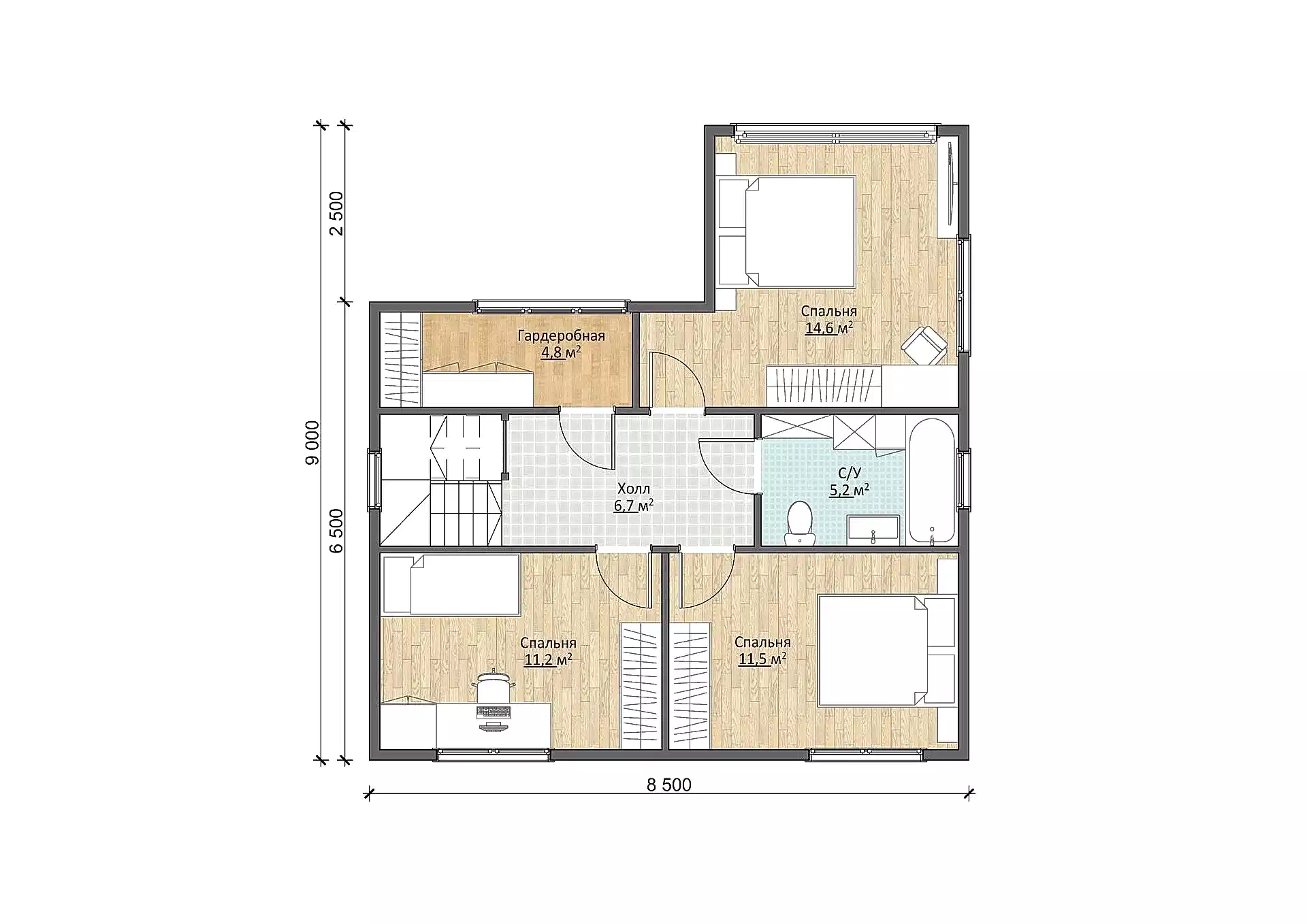 ●3спальни (11,2 м2, PinUp м2 и 14,6 м2);
