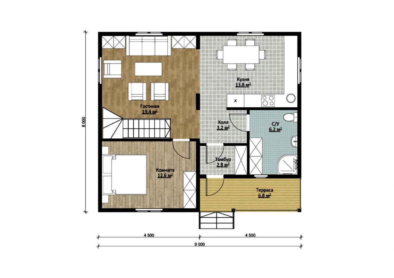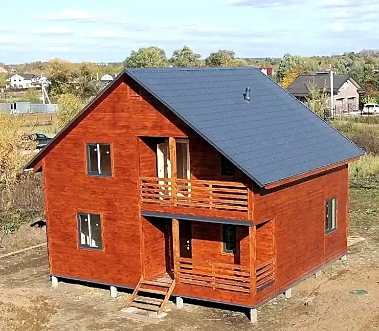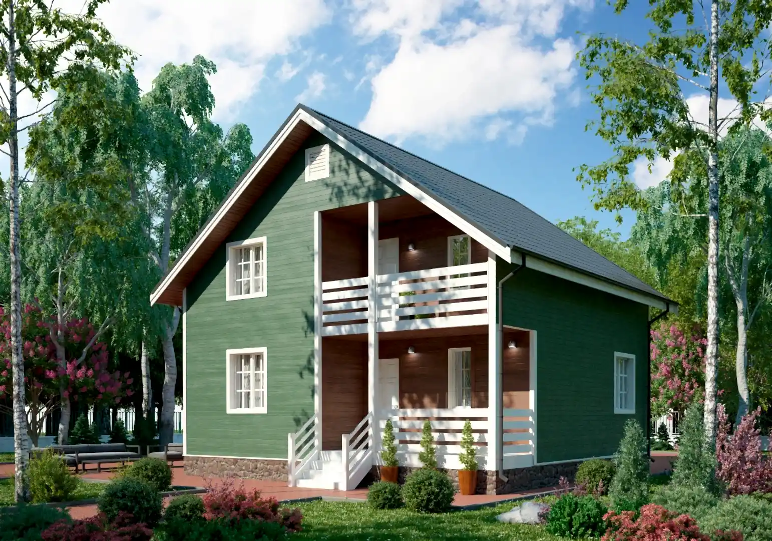Статус 8х9 Аврора - двухэтажный надежный коттедж. Этот дом идеально впишется в спокойную загородную атмосферу.