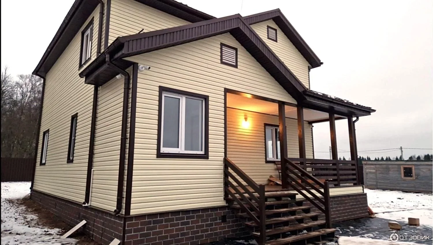 Свайно-винтовой (сваи D=108 м, L=2500 PinUp Нижняя обвязка - труба профильная металлическая 120х80 мм. Гидроизоляция фундамента - рубероид в два слоя. Монтажная доска ПМК обработана огнебиозащитой. Отделка фундамента дома ОСП-9 по обрешетке П По фундаменту установлены отливы (цвет белый).