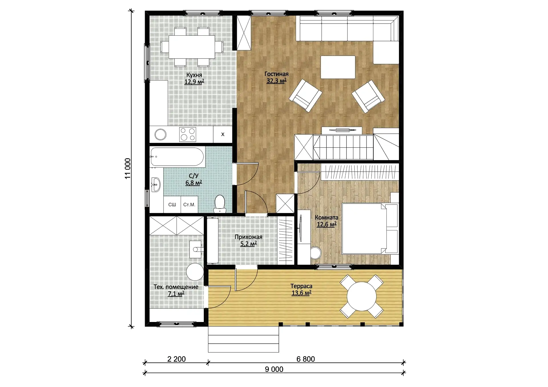 Еще одна дополнительная зона -терраса,на которой можно поставить садовую мебель, мангал и хозяйственные PinUp Отдых на природе выходит на новый уровень!
