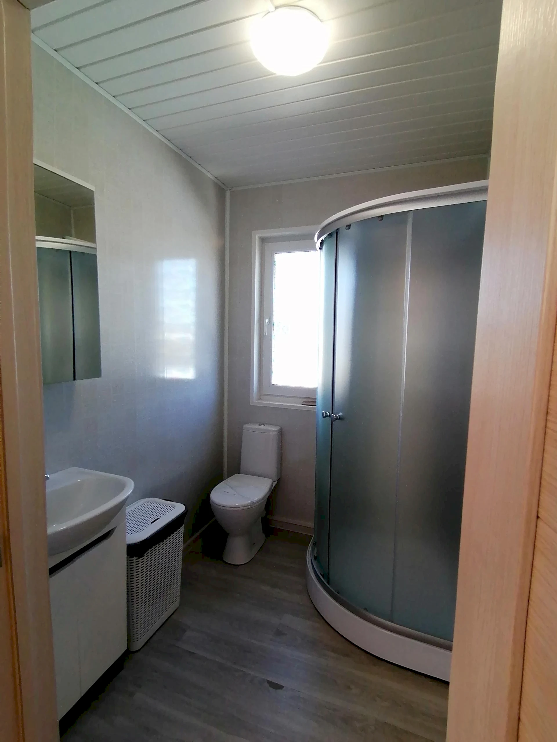 Толщина стен 172 мм. Высота потолка 2 433 мм (от балок пола до балок PinUp Внутренняя обшивка 12,5 мм, ПМК, ветро-изоляционная мембрана, наружная обшивка 12,5 мм.