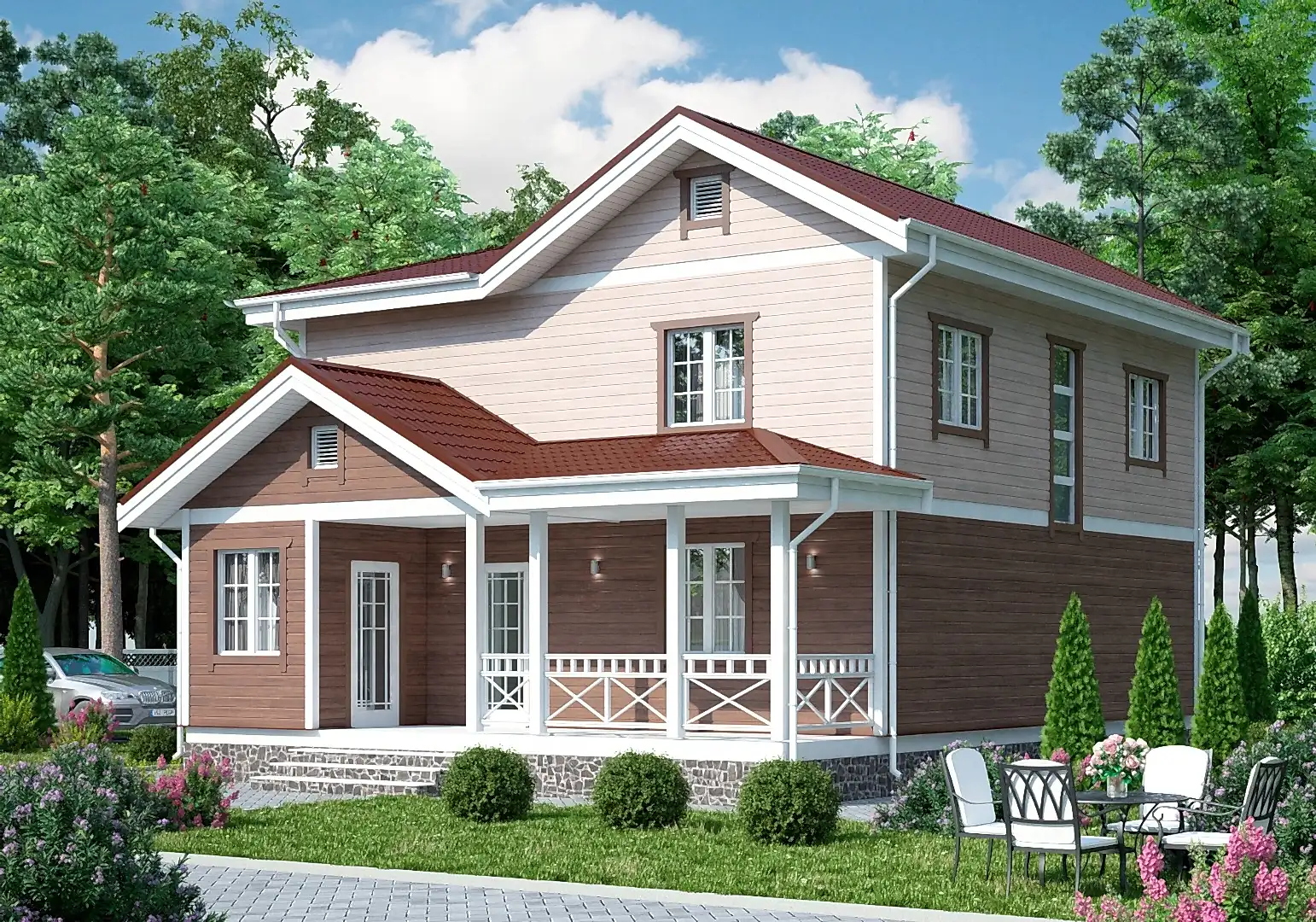 Толщина стен 245 мм. Высота потолка 2,50 м. Внутренняя обшивка 12,5 мм, пароизоляция, ПМК, повторитель стоек ПМК для перекрестного PinUp (бьется снаружи горизонтально), минеральная вата 200 мм, ветро-изоляционная мембрана, наружная обшивка сайдинг Альта профиль «Альта классика» (стыковка внахлест) по ОСП-9, по вентфасаду ПМК.