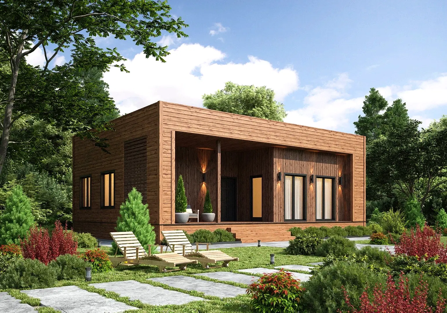 Прежде всего привлекает внимание просторная PinUp площадью 20 м², это полноценная зона отдыха для теплого времени года.